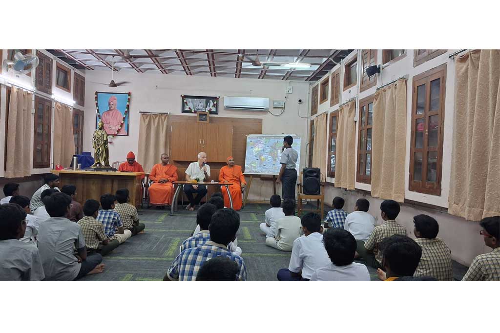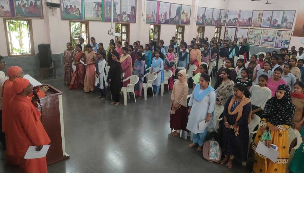 Ramakrishna Mission, Rajamahendravaram centre organized a half-day “Values Education” program for VIII & IX class students on 15 December 2023 for girls and on 16 December 2023 for boys. The program started with Meditation, Vedic chanting, followed by talks by monks, and the recitation of Swadeshi Mantra and quotes of Swamiji by students.